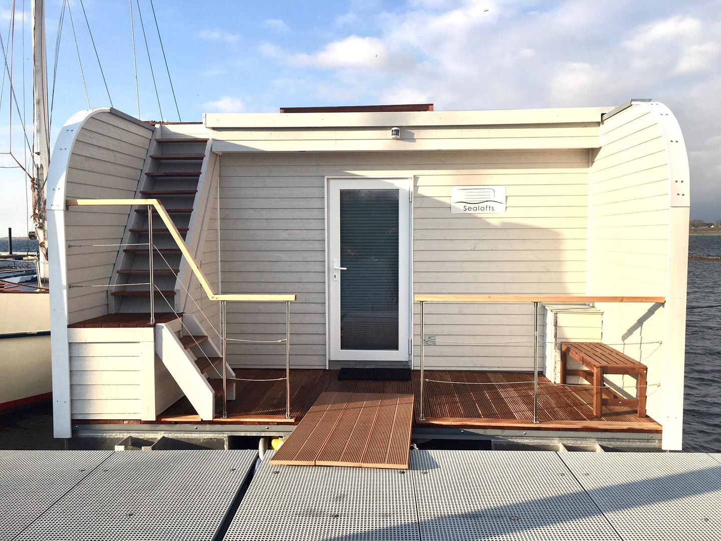 Das moderne Hausboot „Sealoft“ im Wassersportzentrum von Großenbrode bietet komfortablen Urlaub direkt auf dem Wasser mit herrlichem Blick auf die Ostsee. Es ist ideal für bis zu 4 Personen und überzeugt durch seine ruhige und sichere Lage am Steg.